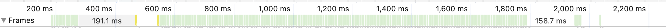 requestAnimationFrame을 적용 후 성능 차이를 직접 확인해보기 위해 개발자도구의 performance 탭을 통해 record를 해보았습니다.