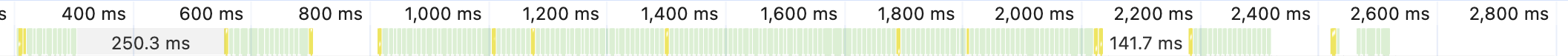 노란색은 partially dropped frame의 개수입니다. 최적화후에 초록색 막대로 가득찬 것이 보이시나요?