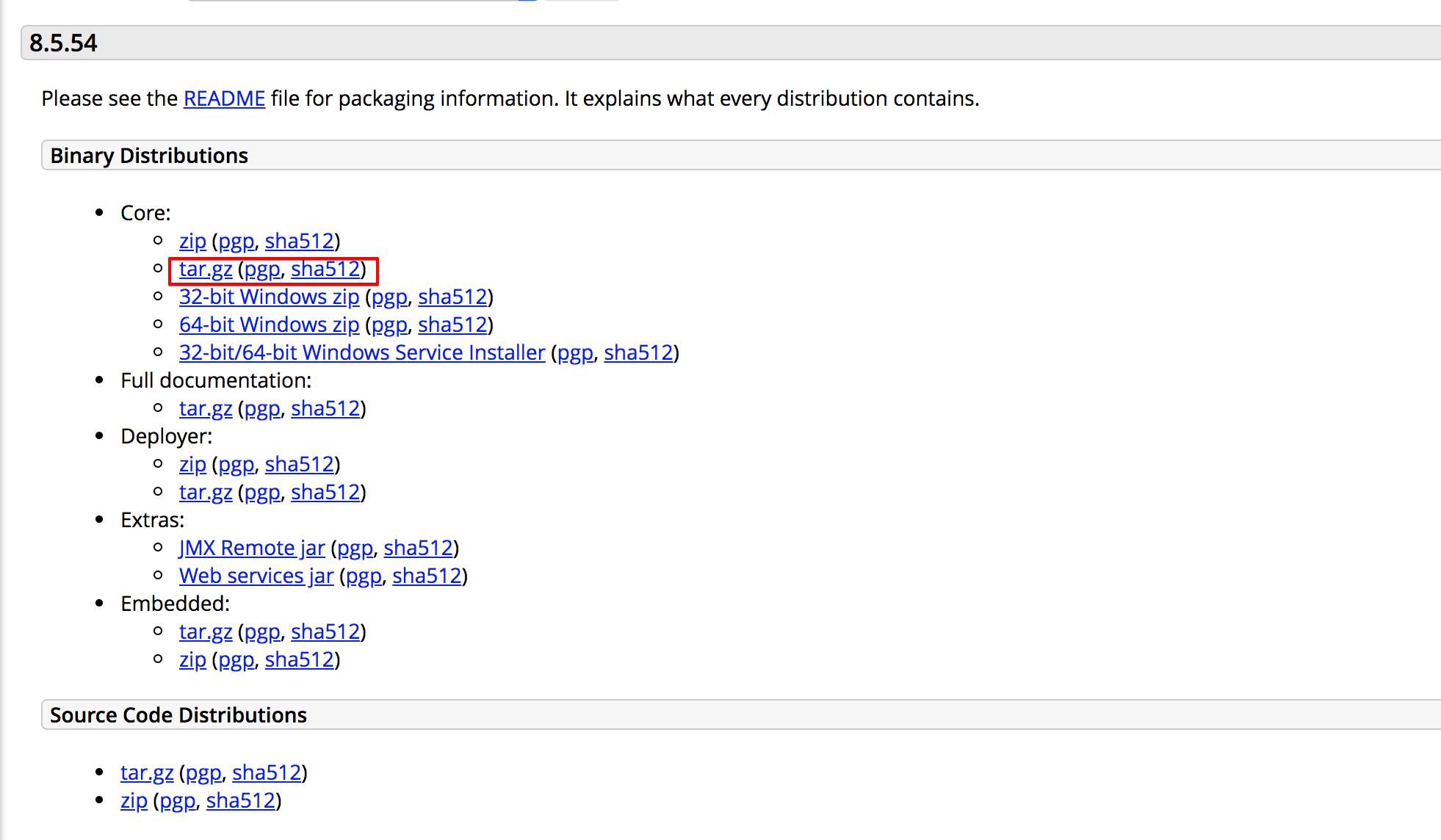 이후, binaries를 누르고 확장자명이 tar.gz인 링크주소를 복사해준다.